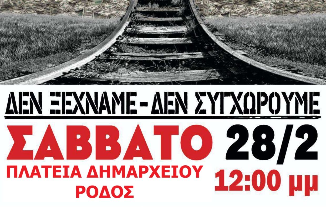 Συνεχίζουμε να παλεύουμε για αποκλειστικά δημόσιες σιδηροδρομικές μεταφορές για να μην υπάρξει συγκάλυψη του εγκλήματος και να αποδοθούν οι ποινικές και πολιτικές ευθύνες σε όλους όσους εμπλέκονται.