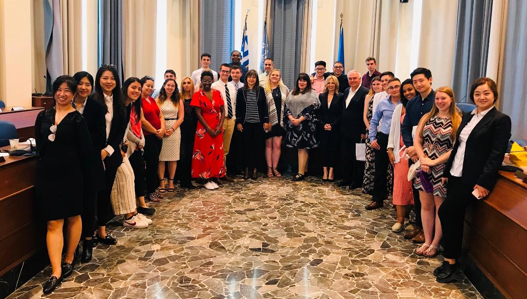 Τους Αμερικανούς φοιτητές και καθηγητές, οι οποίοι συνοδεύονταν φυσικά από τον κ. Τομάζο, υποδέχθηκαν στην αίθουσα εθιμοτυπίας στο Δημαρχιακό Μέγαρο Ρόδου, ο Δήμαρχος κ. Φώτης Χατζηδιάκος και η αντιδήμαρχος Τουρισμού, Διεθνούς Προβολής και Αποδήμων Ροδίων κα Μαρίζα Χατζηλαζάρου.
