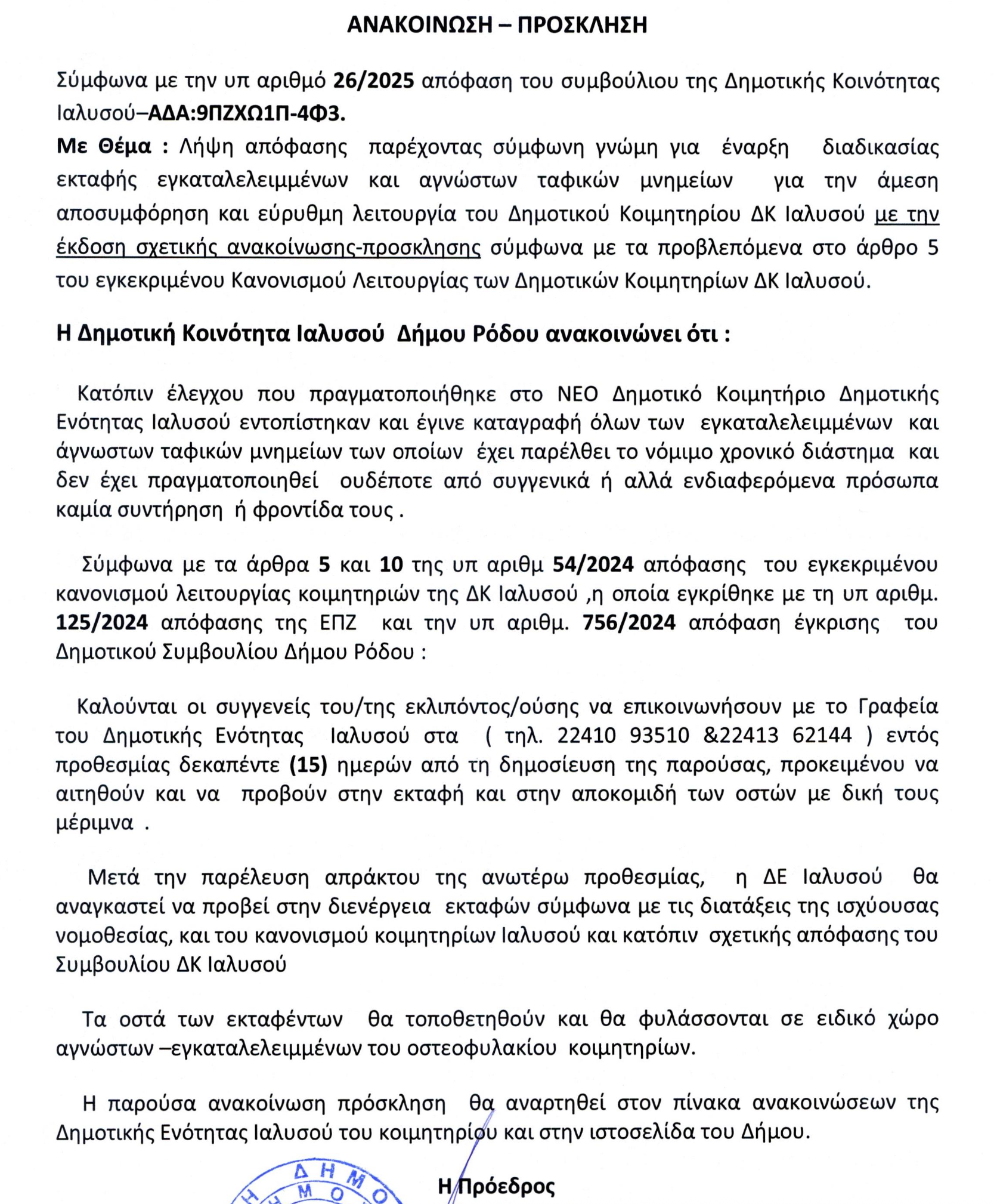 Ανακοίνωση: Εκταφές στον δήμο Ιαλυσού