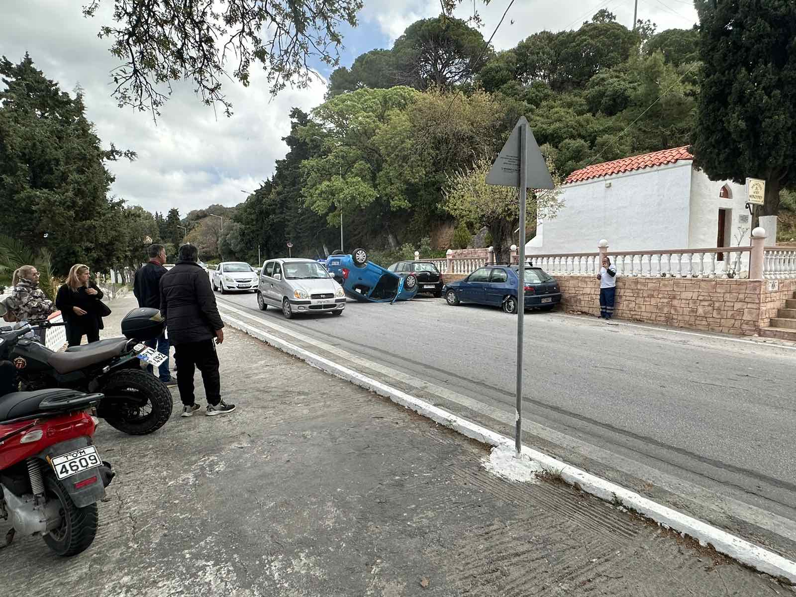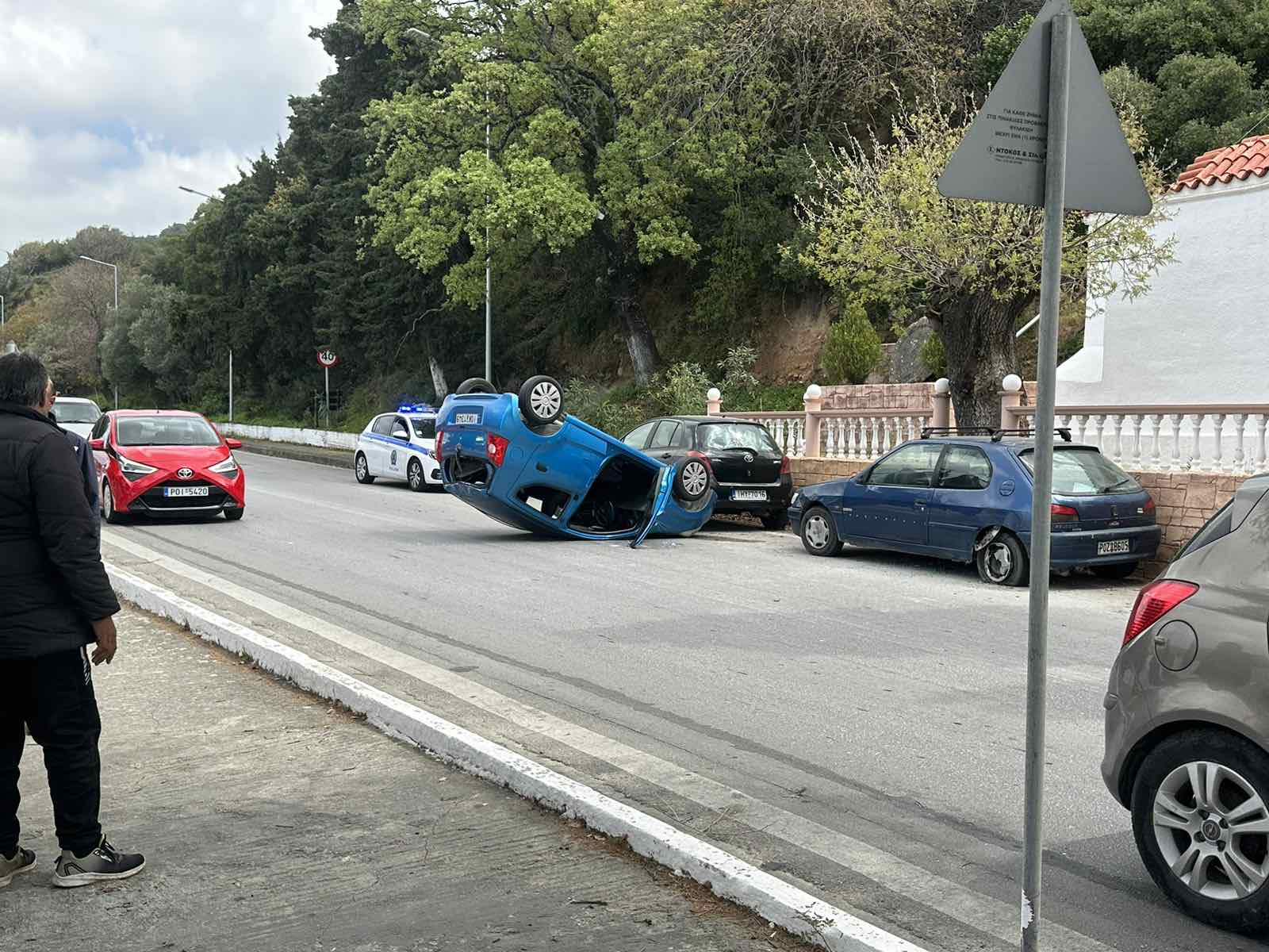 Εξαιτίας του ατυχήματος το αυτοκίνητο που οδηγούσε τουρίστας αναποδογύρισε
