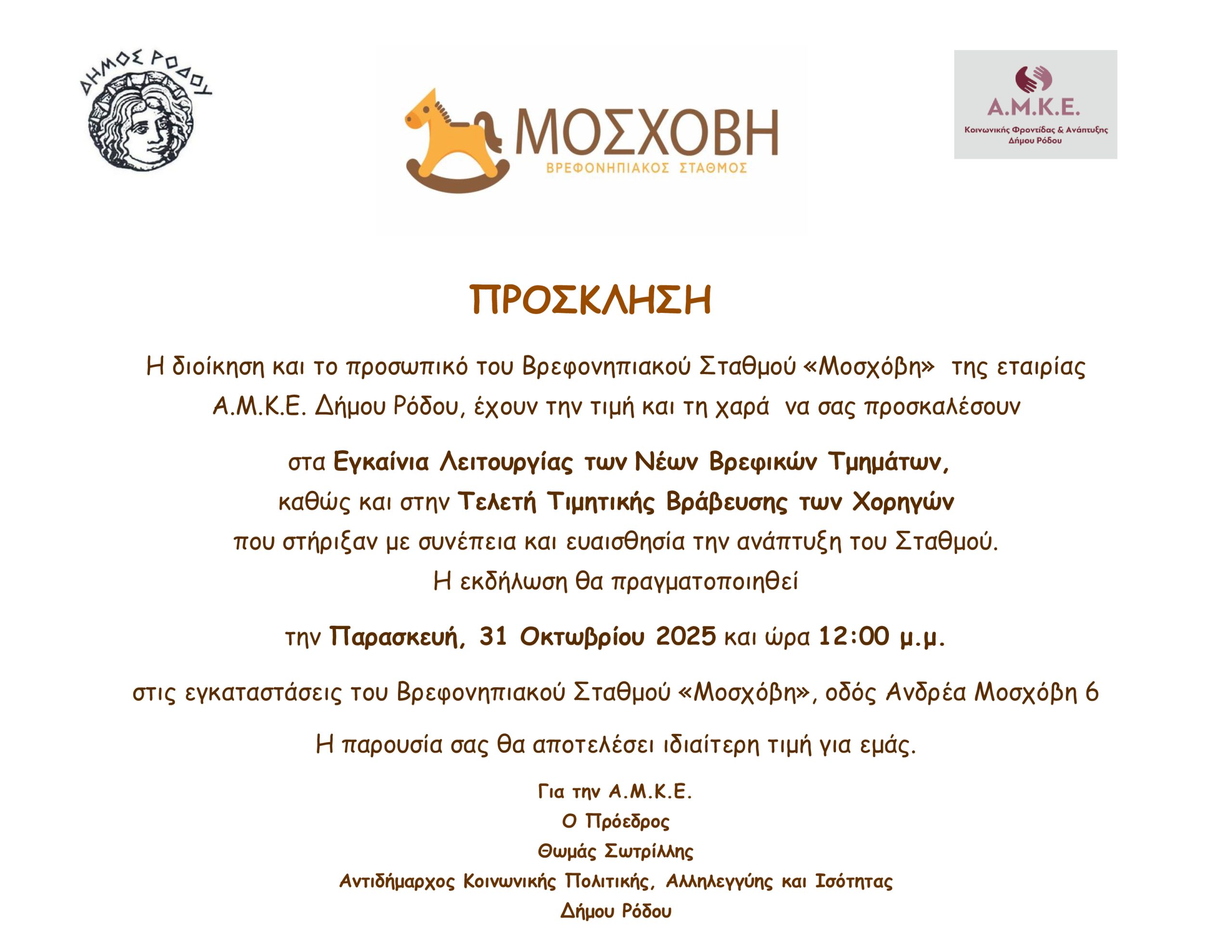 Εγκαίνια νέων βρεφικών τμημάτων και τιμητική βράβευση χορηγών στον βρεφονηπιακό σταθμό «Μοσχόβη»
