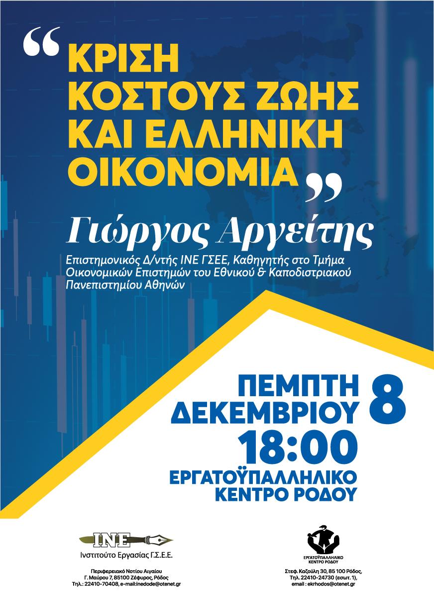 Εκδήλωση με θέμα «Κρίση Κόστους ζωής και ελληνική οικονομία»