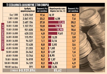 Εφορία: 7 στους 10 δηλώνουν κάτω από 10.000 ευρώ