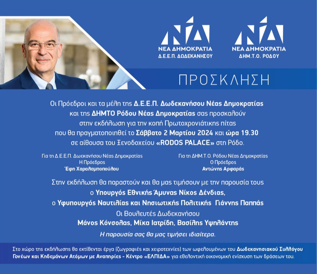 Η πρόσκληση για την πίτα της Νέας Δημοκρατίας με τον Νίκο Δένδια