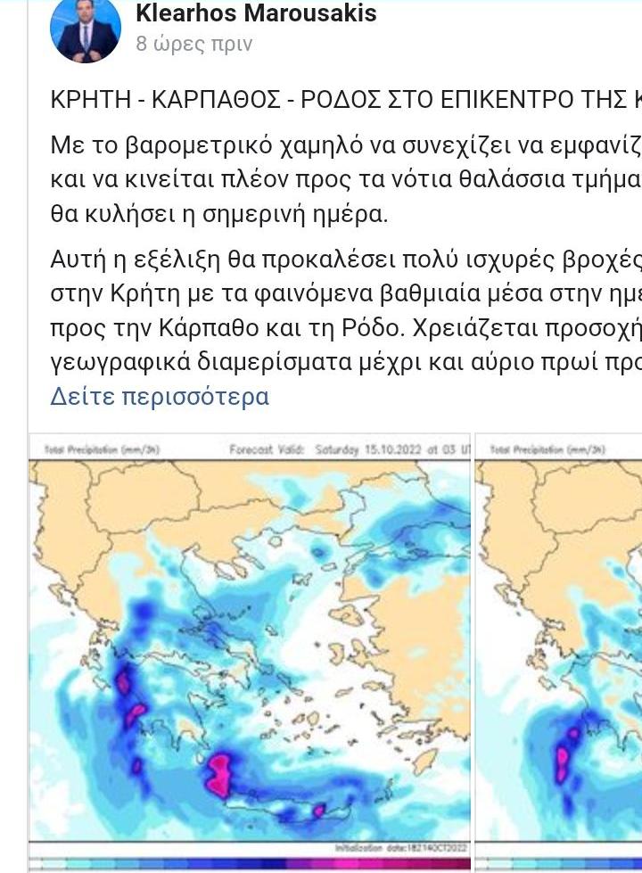 Μαρουσάκης: «Καμπανάκι» για έντονα φαινόμενα σε Κρήτη, Κάρπαθο και Ρόδο , η πρόγνωση