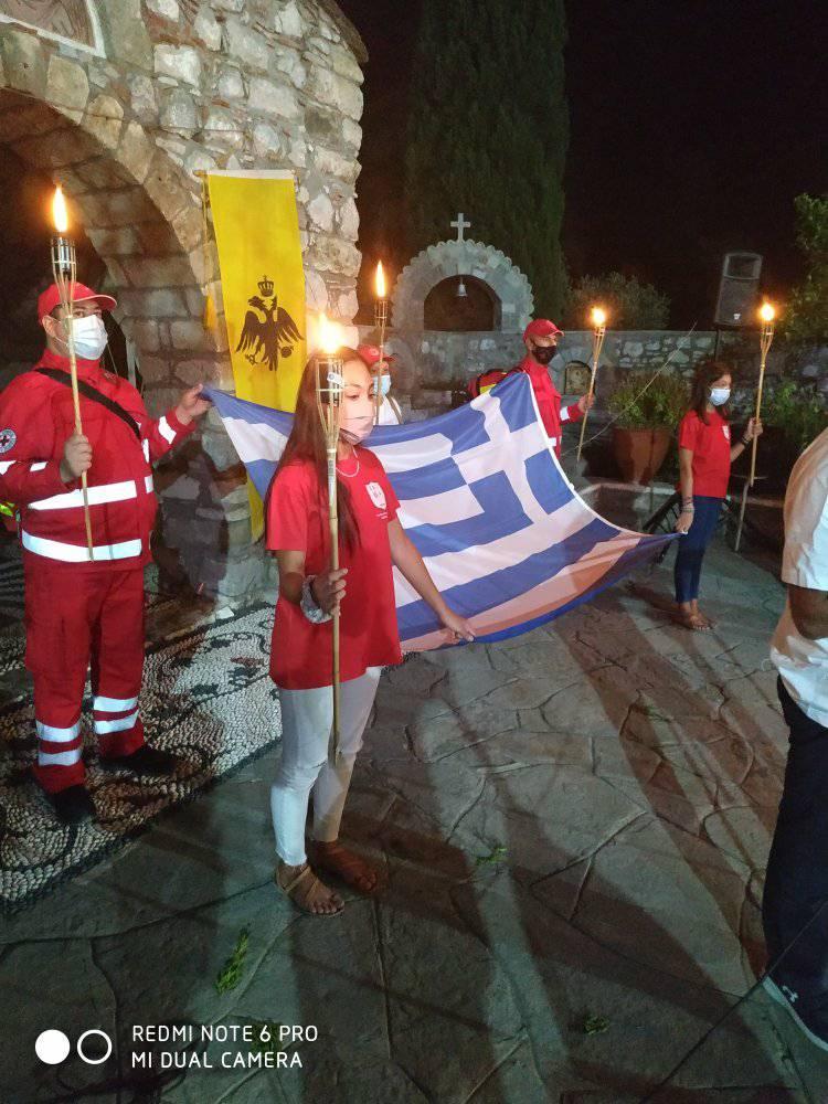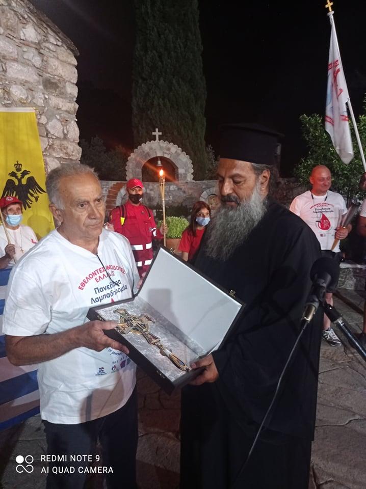 Της λαμπαδηδρομίας από τον Άγιο Εφραίμ στο προαύλιο της Ιεράς Μονής ΘΑΡΡΙ προπορεύθηκε η Ελληνική σημαία με τους Ερυθροσταυρίτες, στέλνοντας το μήνυμα της ευγενούς άμιλλας και του εθελοντισμού κατά τη δύσκολη αποστολή τους, αυτής της υγειονομικής κάλυψης.