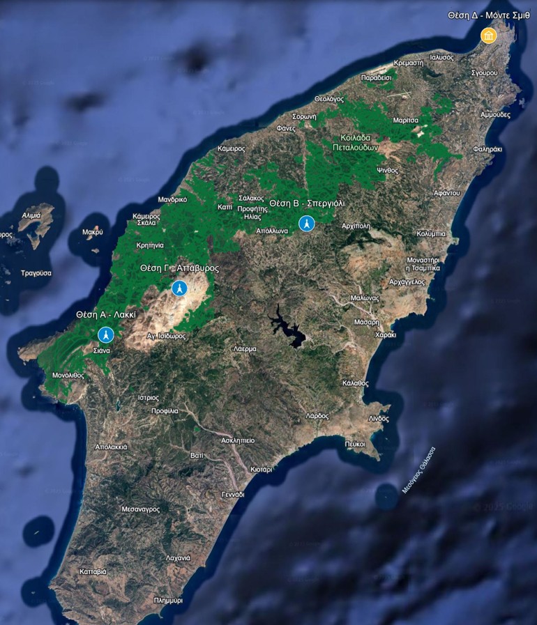 - στη θέση Σπεργιόλι, στον Προφήτη Ηλία, με οπτική κάλυψη έως Σάλακο–Καλαβάρδα–Φάνες–Σορωνή και ιδιαίτερη μέριμνα για Διμυλιά και Ελεούσα,