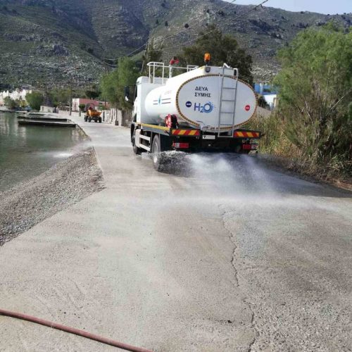 Πυρετώδεις προετοιμασίες στη Σύμη – Στους δρόμους τα συνεργεία