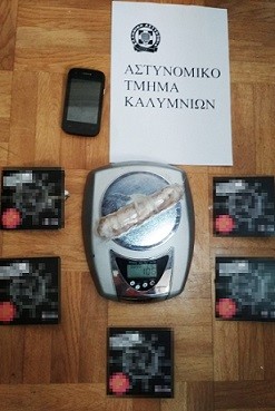 Συνελήφθη χθες (20 Αυγούστου 2019) στην Κάλυμνο, από αστυνομικούς του Αστυνομικού Τμήματος Καλυμνίων, ένας 37χρονος ημεδαπός κατηγορούμενος για κατοχή και μεταφορά ναρκωτικών ουσιών με σκοπό τη διακίνηση.