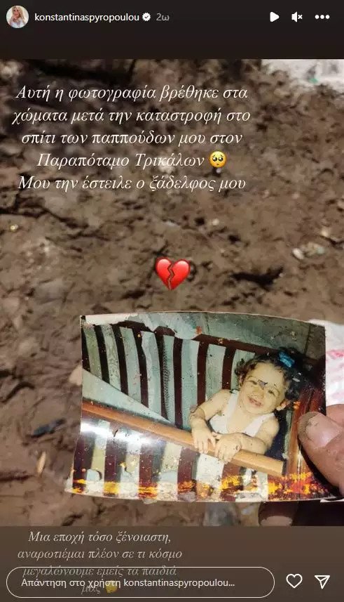 Συντετριμμένη η Κωνσταντίνα Σπυροπούλου: Καταστράφηκε από τις πλημμύρες το σπίτι των παππούδων της στα Τρίκαλα