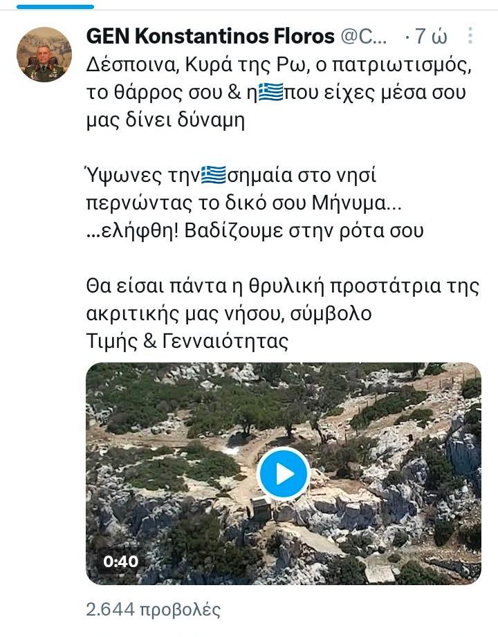 Το μήνυμα του αρχηγού ΓΕΕΘΑ για τη συμπλήρωση 41 χρόνων από το θάνατο της Κυράς της Ρω
