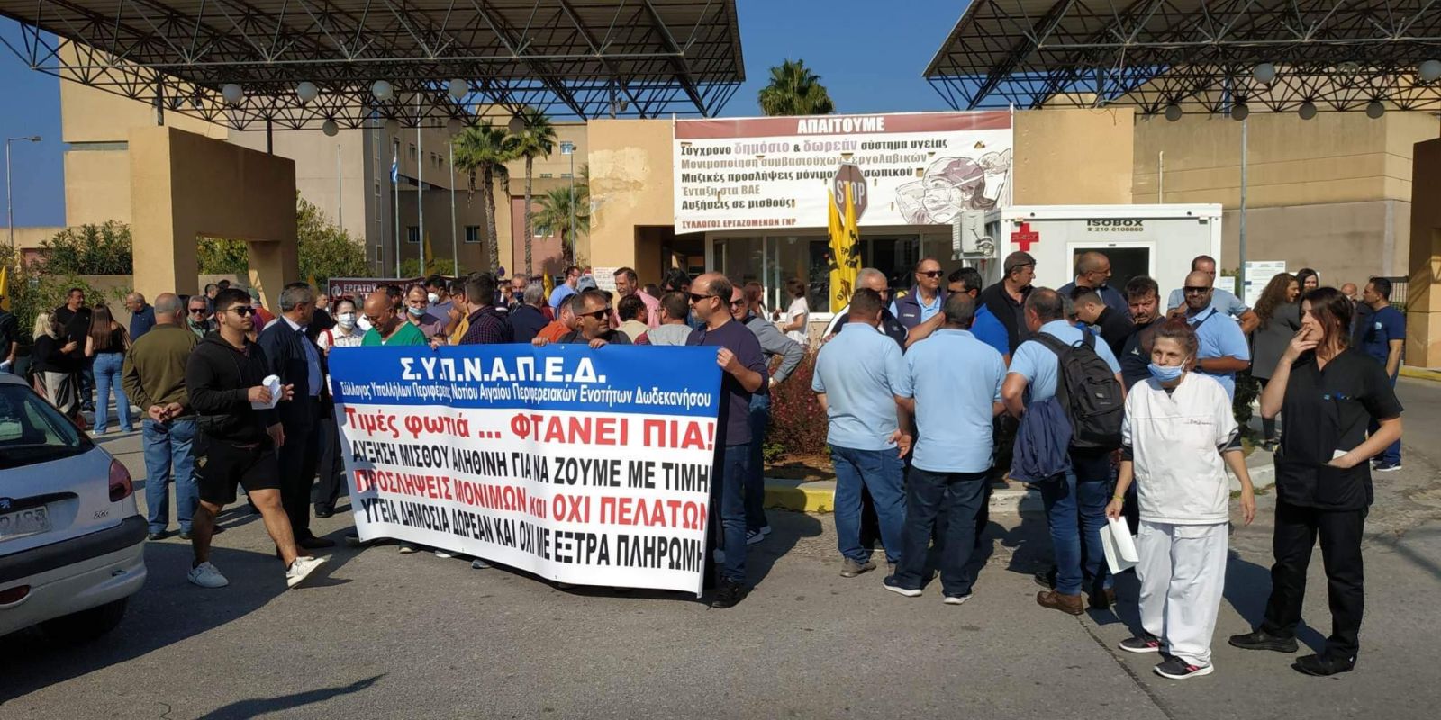Όχι στην υποστελέχωση του νοσοκομείου αλλά και στην ακρίβεια λένε οι εργαζόμενοι. H συγκέντρωση στο ΓΝΡ