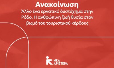 Άλλο ένα τραγικό εργατικό δυστύχημα προστέθηκε στη μακρά λίστα της εργοδοτικής αυθαιρεσίας και της κρατικής ανοχής, αυτή τη φορά σε πλυντήρια μεγάλου ξενοδοχείου στη Ρόδο. Εργαζόμενος...