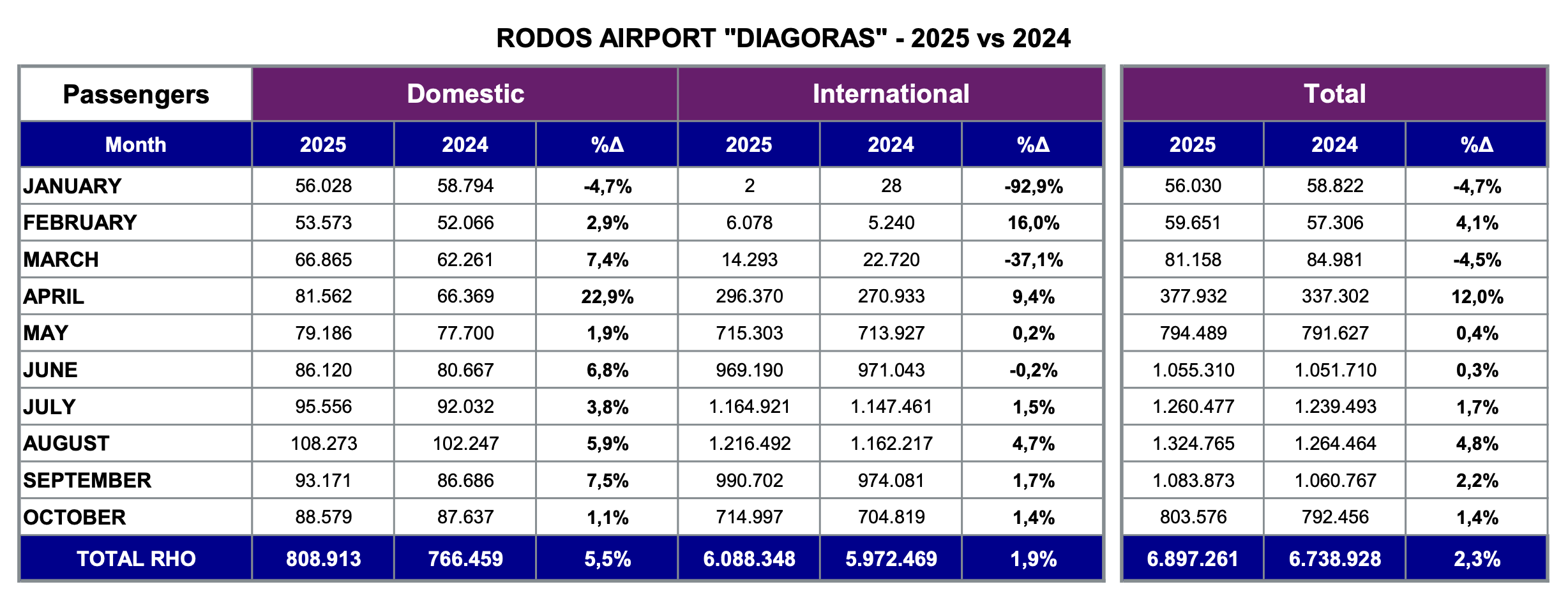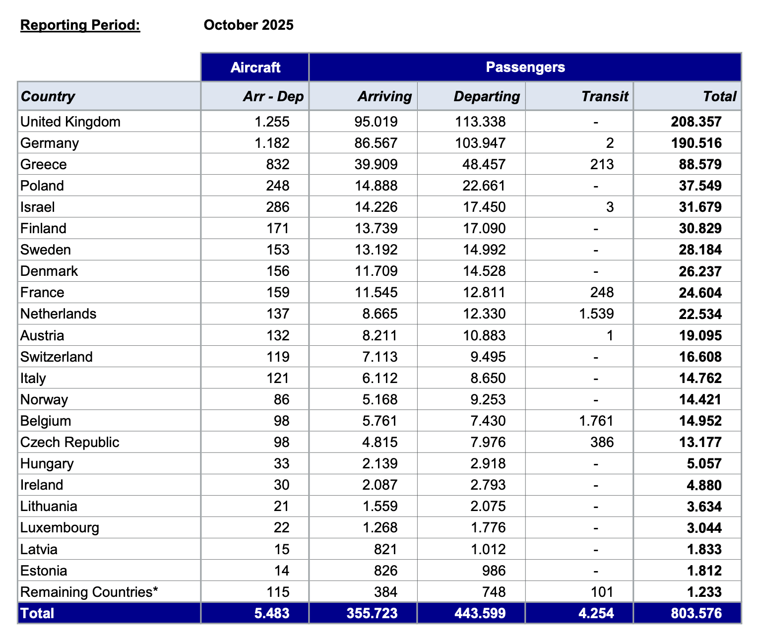 Fraport: Η κίνηση τον Οκτώβρη στο αεροδρόμιο και συγκριτικά 2024 και 2025